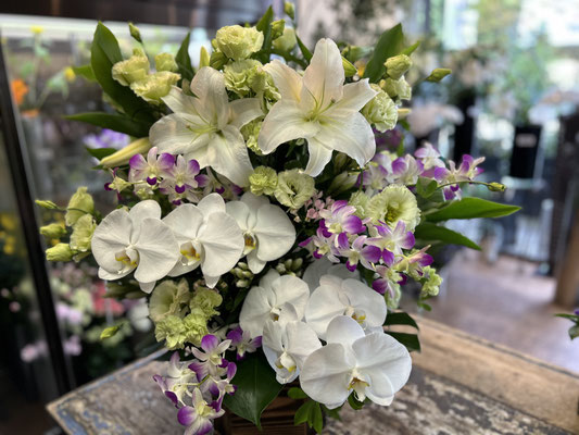 四十九日 一周忌 三回忌 お盆 お彼岸 法事 法要など お供えシーンに対応できるお花をご用意致します。
